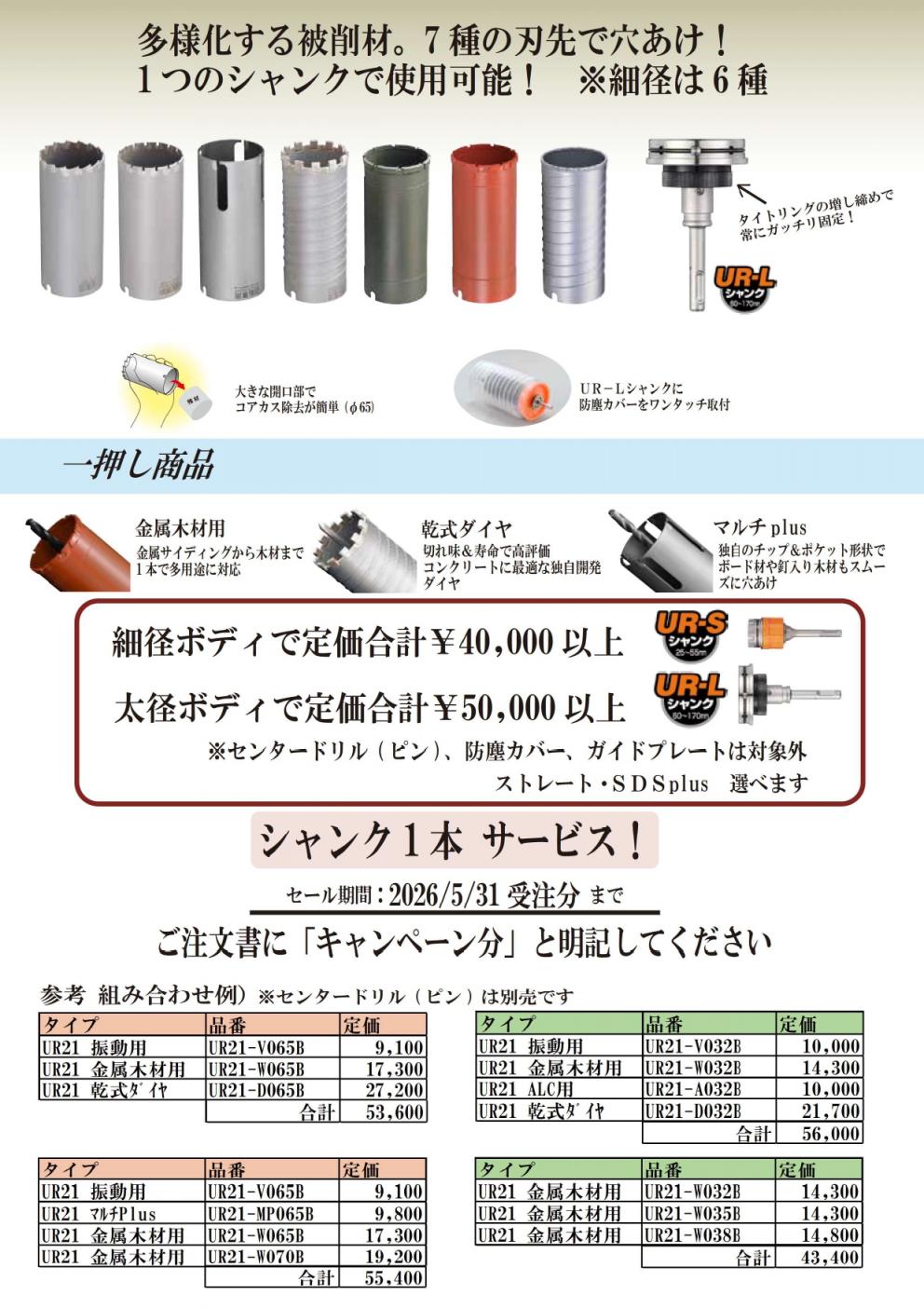 ユニカ 多機能コアドリルUR21 シャンクサービスキャンペーン